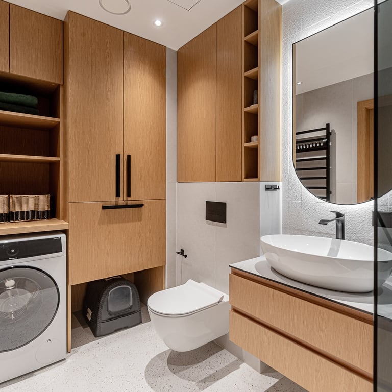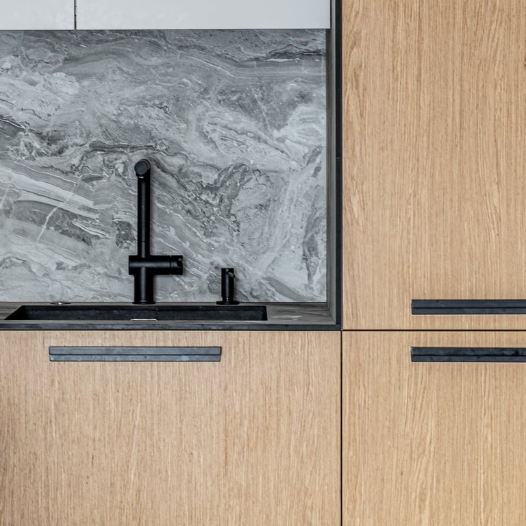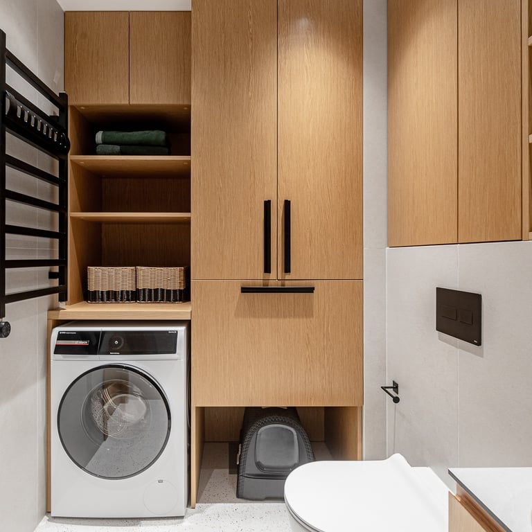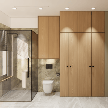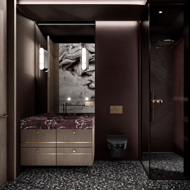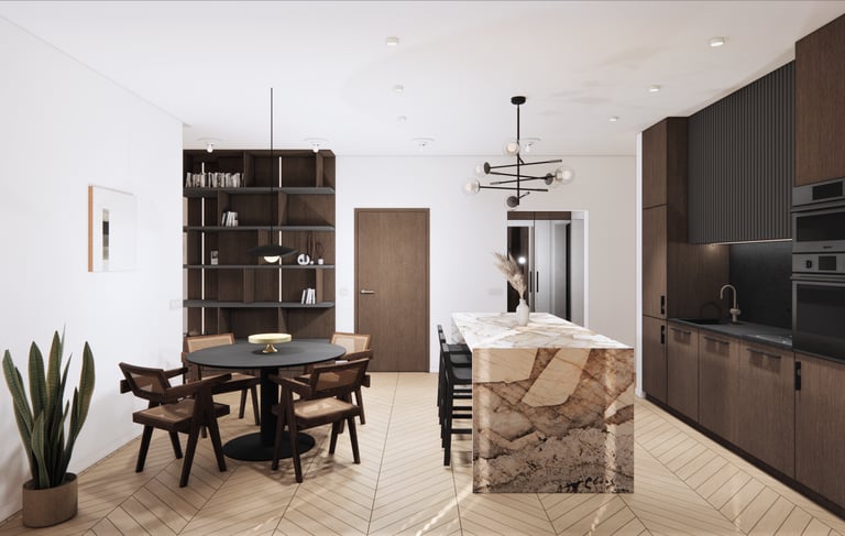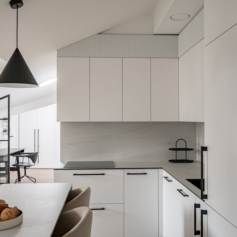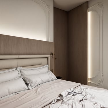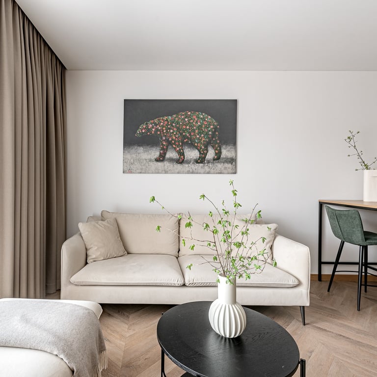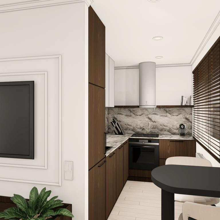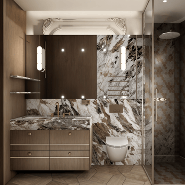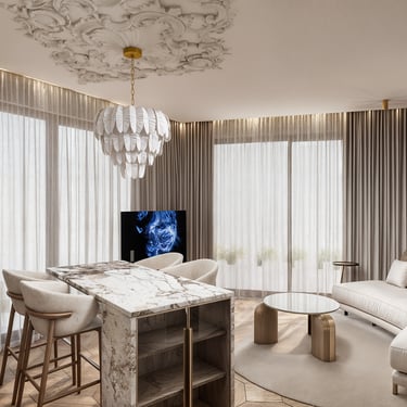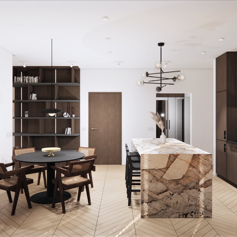 Rinkdamasi interjero sprendimus, daug dėmesio skyriau natūralių medžiagų pasirinkimui, šviesos balansui ir erdvės proporcijoms. Marmuro akcentai, šiltos medienos tekstūros, minkšti audiniai ir apgalvotas apšvietimas sukuria harmoningą aplinką, kurioje estetika dera su kasdienio gyvenimo patogumu.