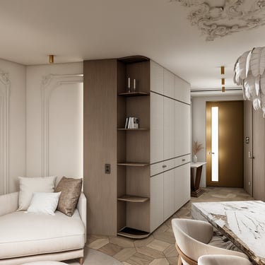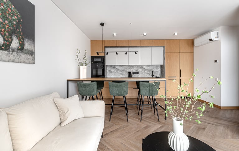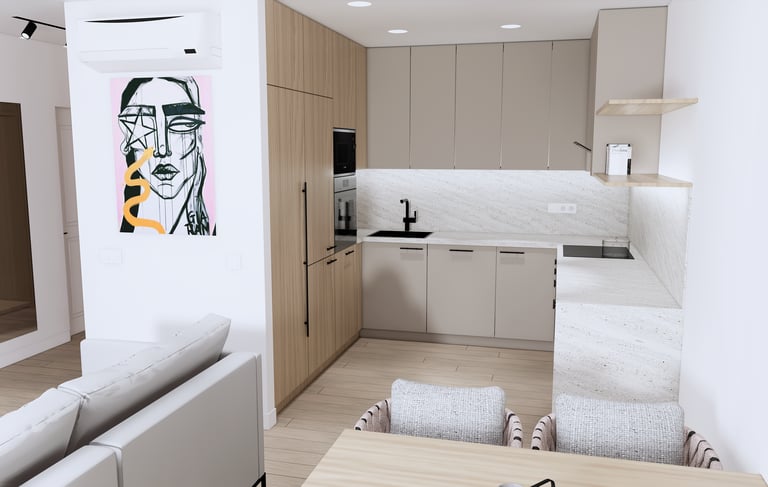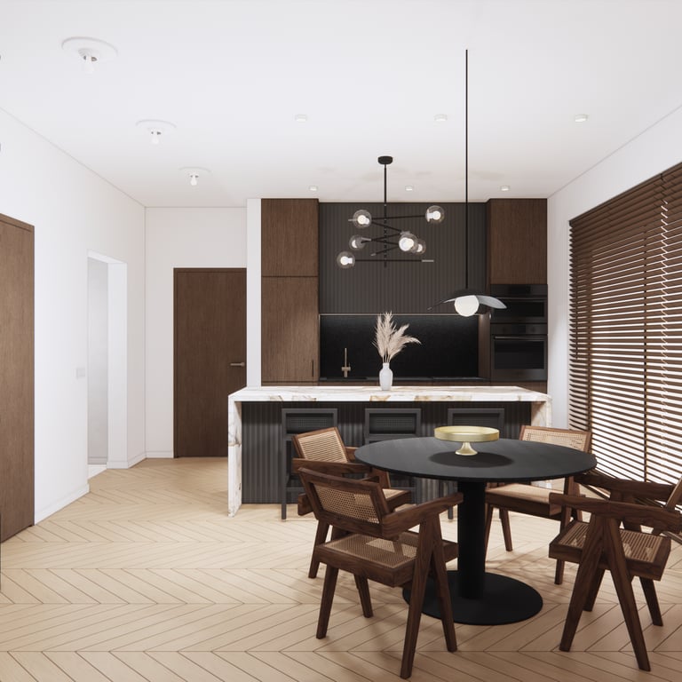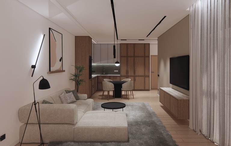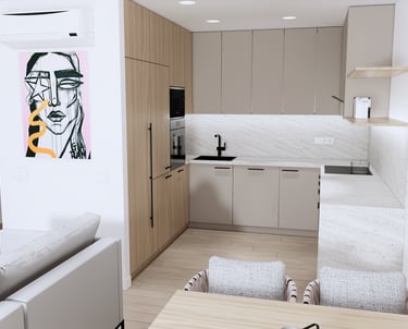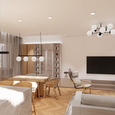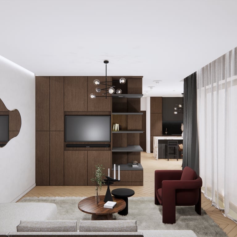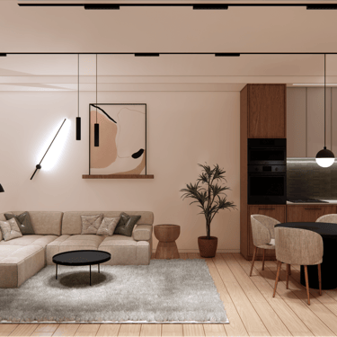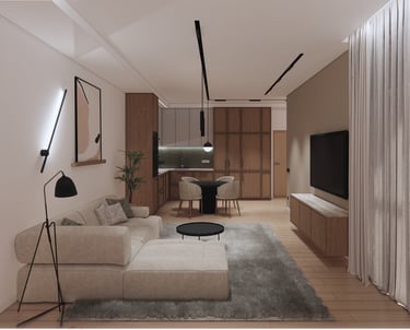 Kurdama šį modernų interjero dizaino projektą, siekiau subtiliai suderinti šiuolaikinį funkcionalumą, natūralų jaukumą ir rafinuotą estetiką. Projektas buvo vystomas su aiškia vizija – sukurti prabangų, tačiau jaukų interjerą, kuris atlieptų aukštos gyvenimo kokybės poreikius.