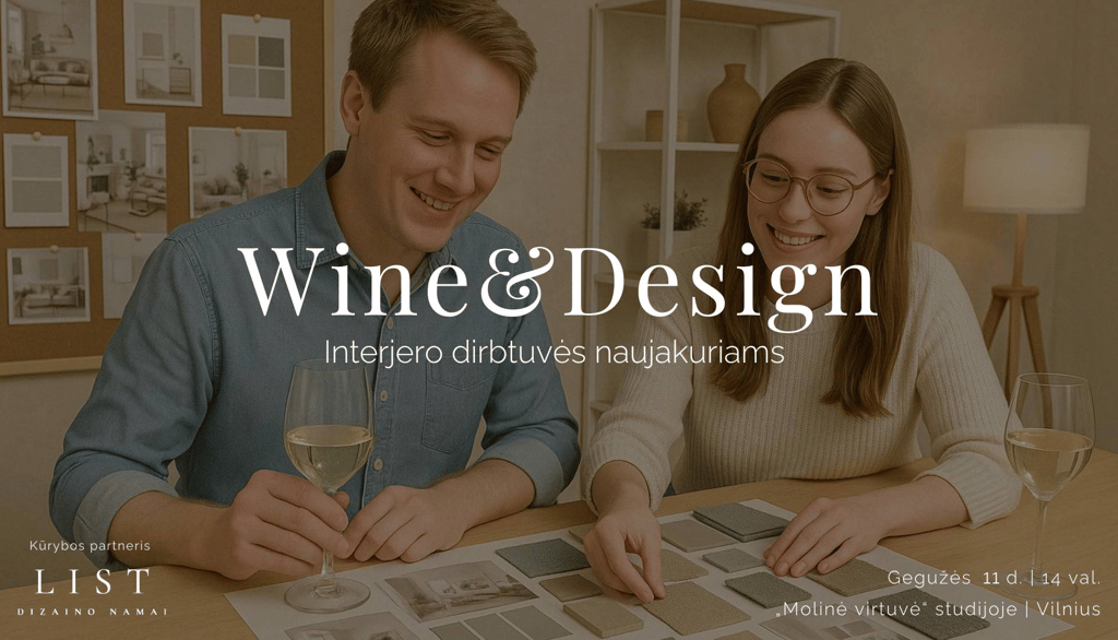 Ieškote namų įrengimo patarimų? „Wine and Design“ interjero dirbtuvės padeda naujakuriams išvengti klaidų, susikurti aiškią viziją ir drąsiai kurti savo namus.