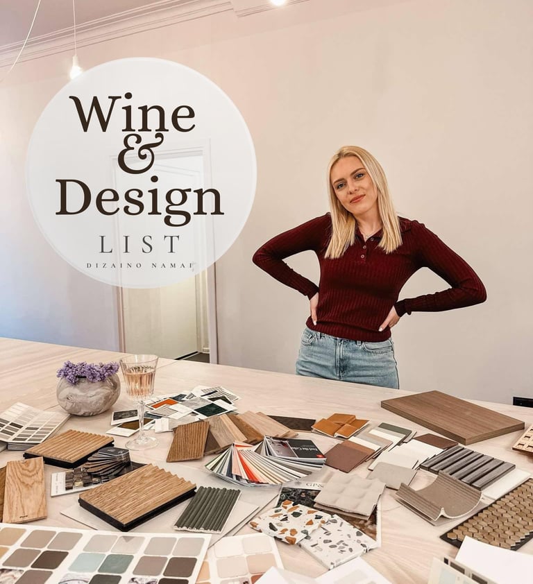 „Wine and Design“ gimė iš ilgametės patirties dirbant su įvairiais būsto įrengimo projektais. Dirbdama su klientais pastebėjau, kad naujakuriai dažnai susiduria su nerimu ir neapibrėžtumu planuodami savo namų interjerą. Ką pasirinkti pirmiausia? Kaip suderinti medžiagas, spalvas, baldus? Kaip išvengti dažniausiai pasitaikančių klaidų?